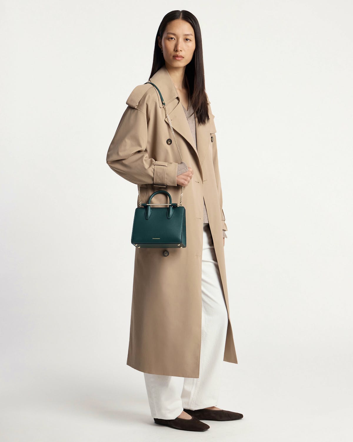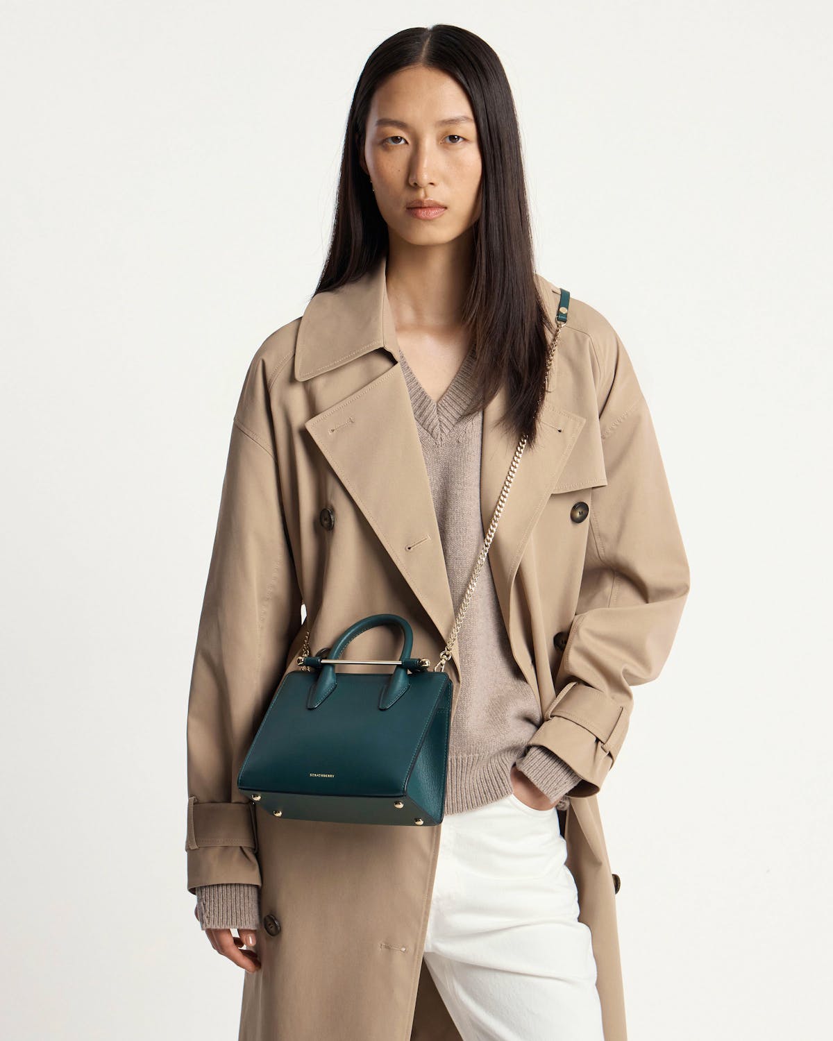 The perfect in-between. Inspired by a vintage music folio discovered by our founders, the Mini Tote introduces a highly requested size, bridging the gap between the Nano and the Midi. Defined by its understated silhouette, this timeless design features the signature Music Bar closure that elegantly secures the top handle. Handcrafted with versatility in mind, it can be carried by hand or styled crossbody with the detachable chain strap—ideal for everyday elegance.